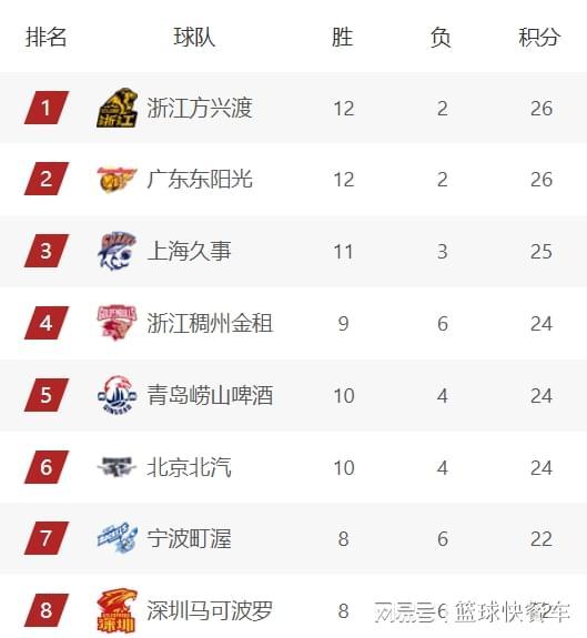 附:CBA积分榜最新排名