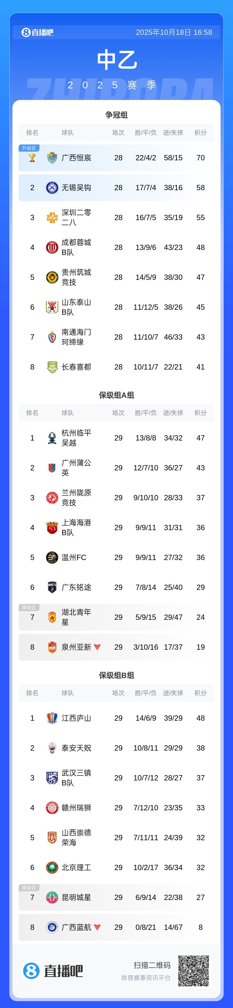 10月18日讯 中乙保级组第29轮,湖北青年星1-3不敌温州FC,昆明城星0-1不敌泰安天贶,双双降入中冠。